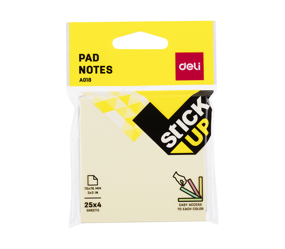 წებოვანი ჩასანიშნი, 76×76 მმ., 4×25 ფურცელი, DELI [A01802]
