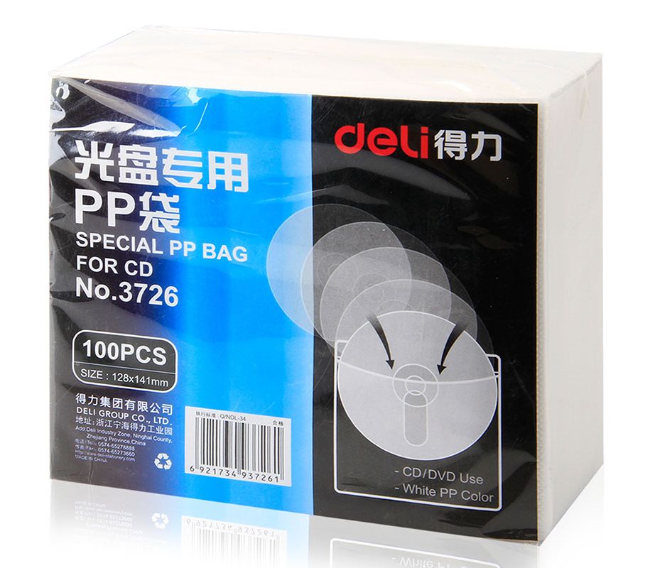 CD დისკის ჩასადები, პლასტიკური, 100 ც., DELI [3726]